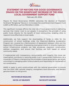 The Mayors for Good Governance (M4GG) extended its congratulations to the Pasig City Government, led by Mayor Vico Sotto,