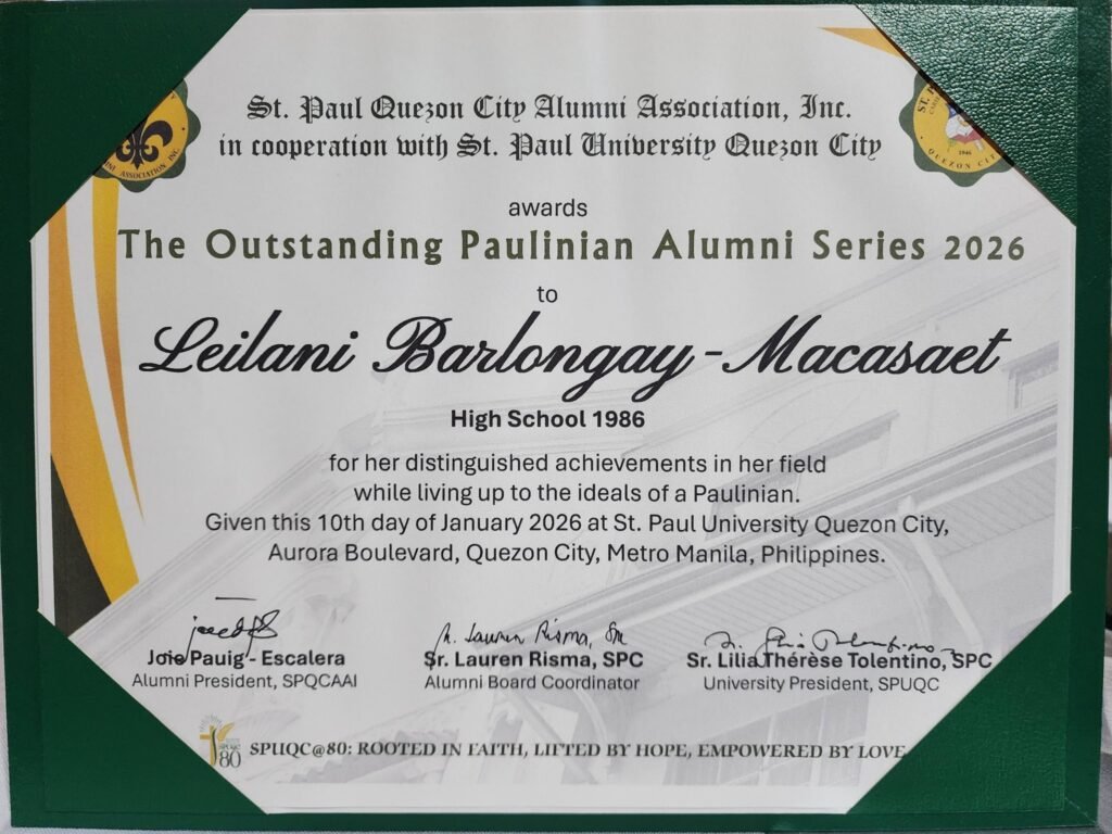 Macasaet credited St. Paul University Quezon City for shaping her values and character, citing the institution’s lasting influence through its lessons, memories, and formation. She dedicated the recognition to God, whom she said remains the source of her achievements.