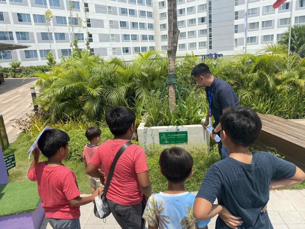 In SM City Clark, the children were led on an informative and sustainable tour of the Sky Line, where they learned about waste segregation, recycled water, the use of LED lights, and greening. The tour began with an overview of waste segregation. They were then shown how to treat wastewater for reuse in watering plants. They were taught the importance of using LED lights, which are more cost effective than traditional lights. The tour concluded with an emphasis on greening, in which the students were shown how planting trees and other plants helps to reduce carbon dioxide and improve air quality.