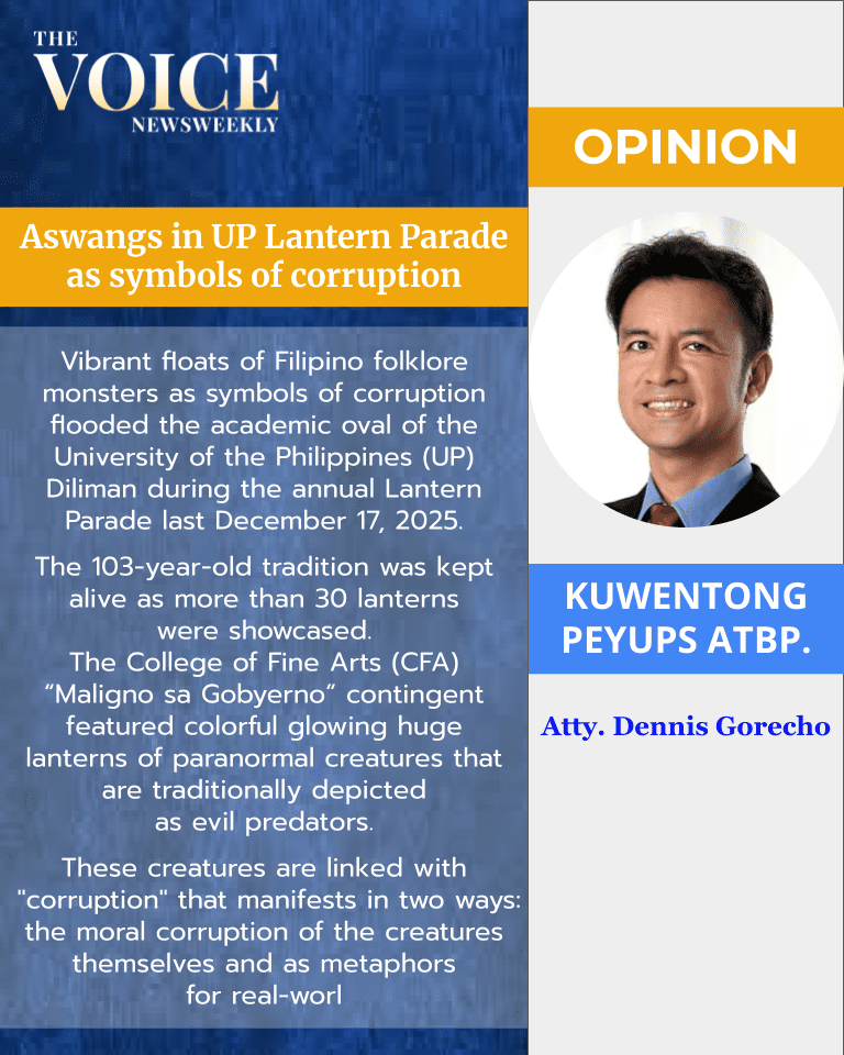 Vibrant floats of Filipino folklore monsters as symbols of corruption flooded the academic oval of the University of the Philippines (UP) Diliman during the annual Lantern Parade last December 17, 2025.