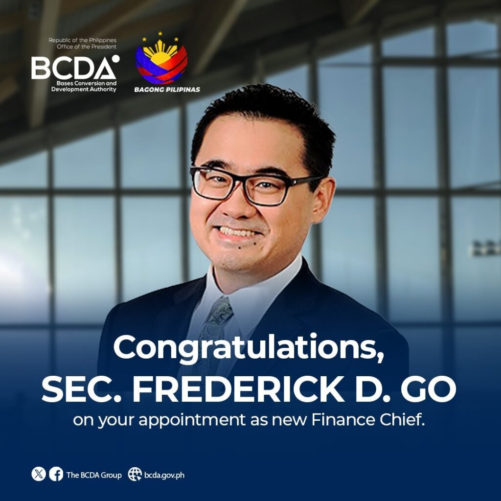 The Bases Conversion and Development Authority (BCDA) congratulates Frederick D. Go on his appointment as Secretary of Finance, expressing full support for his leadership in steering the country’s fiscal direction. With a strong background in investment promotion and economic policy, Secretary Go brings a steady and strategic hand to government efforts aimed at strengthening fiscal management, boosting investor confidence, and delivering tangible benefits to Filipino families.