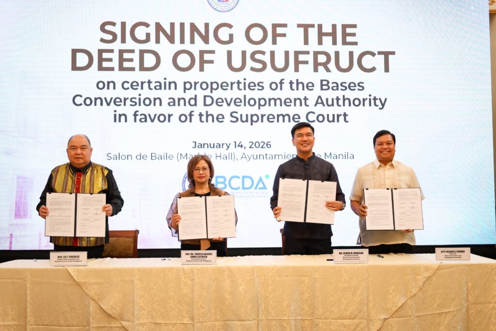 In line with President Ferdinand R. Marcos Jr.’s push for inclusive and people-centered governance, the Bases Conversion and Development Authority (BCDA) has granted the Supreme Court of the Philippines usufructuary rights over a 10,000-square-meter property in Camp John Hay for the construction of a Hall of Justice serving Baguio City and nearby areas in Northern Luzon.