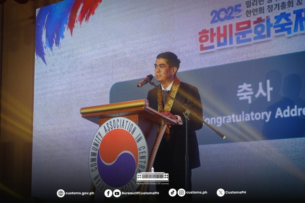 Bureau of Customs-Port of Clark District Collector Jairus S. Reyes extended his congratulations to the 2025 Hanbi Cultural Festival and Year-End General Assembly, also known as the Philippine–Korean Cultural Exchange Festival, recognizing the event as a reflection of the enduring partnership between the Philippines and the Republic of Korea.