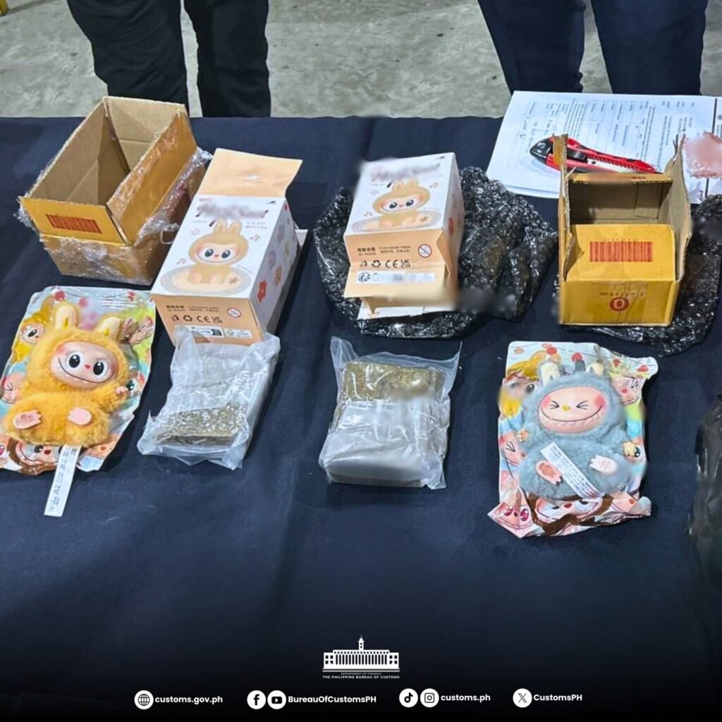 The Bureau of Customs (BOC), through the Port of Clark, intercepted 538 grams of high-grade marijuana or “Kush” worth an estimated ₱807,000 after discovering the illegal substance concealed inside stuffed “Labubu” toys. The parcel, declared as “keychains,” originated from Hong Kong and was bound for Biñan, Laguna.