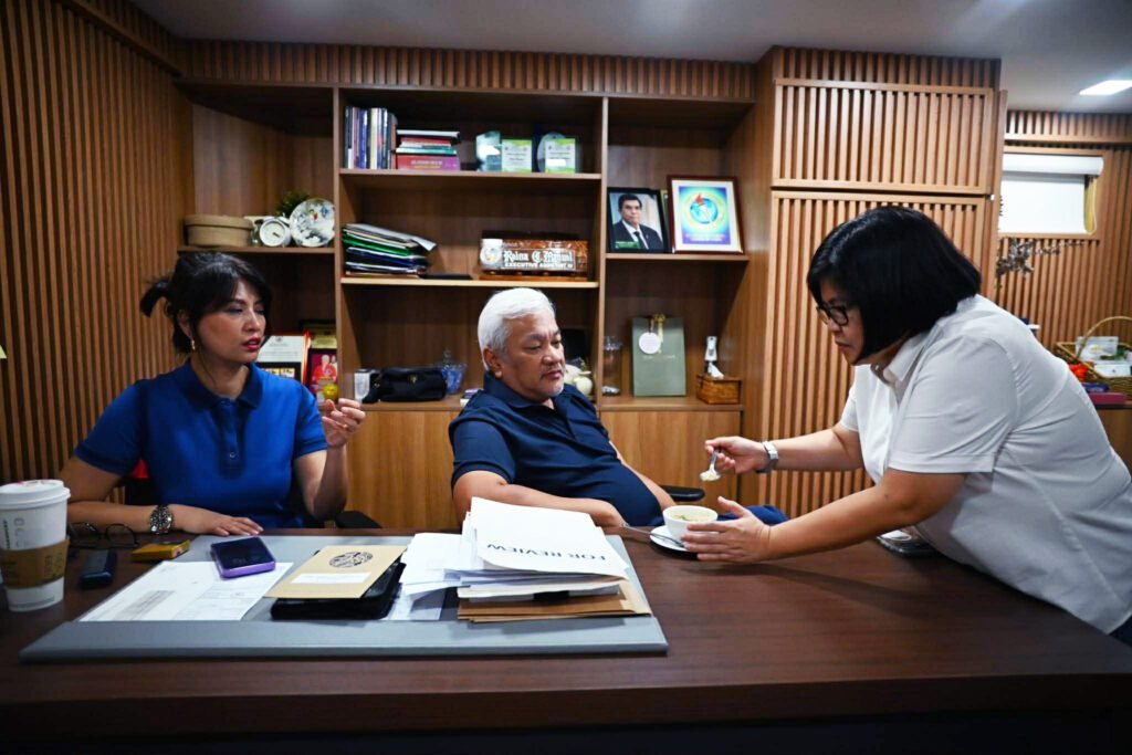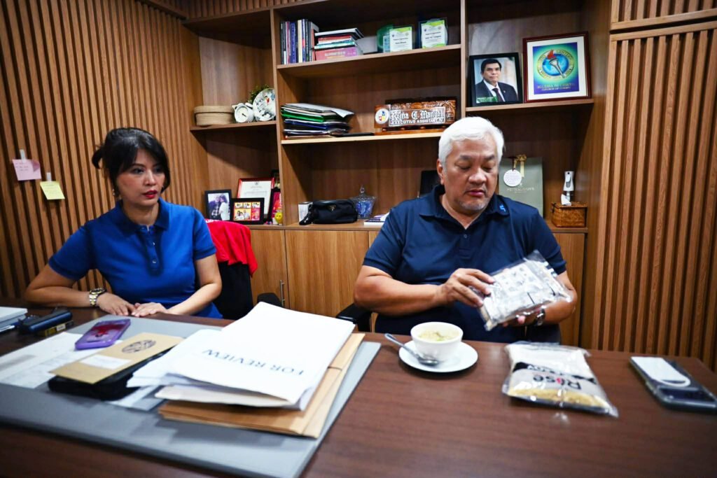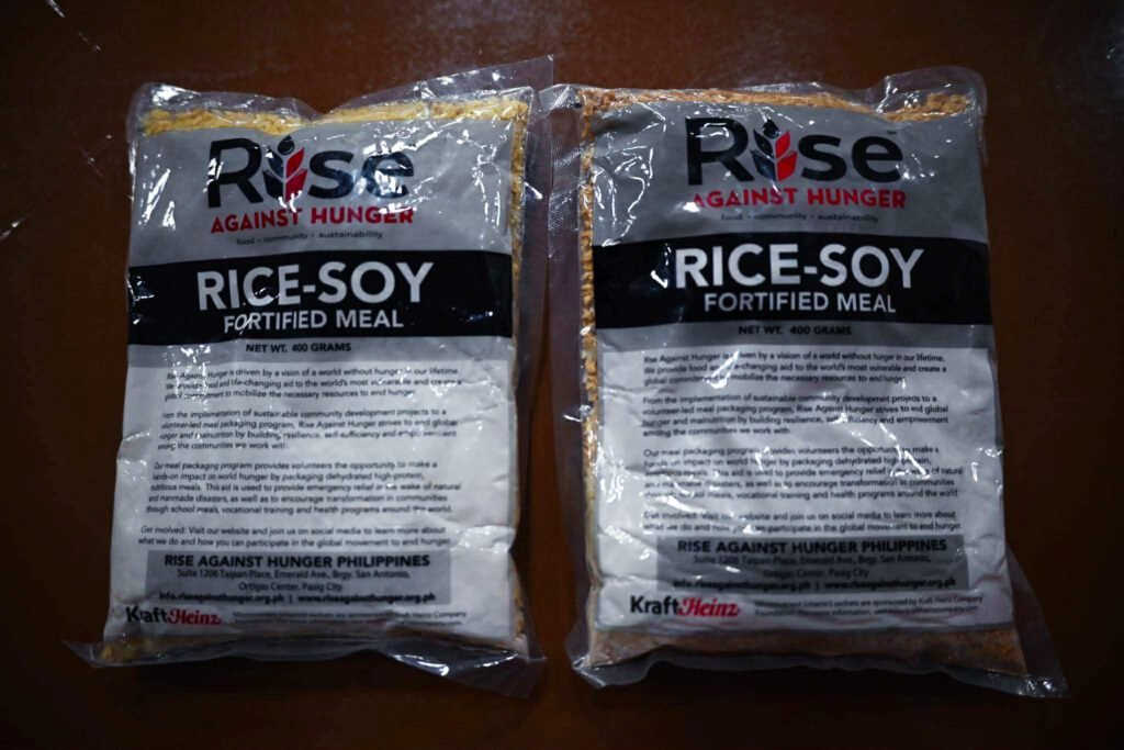 Congressman Carmelo “Pogi” Lazatin, Jr., together with his staff, sampled the nutrient-rich “rice soy” porridge provided by Rise Against Hunger, which will be served in a large-scale joint feeding program organized by his office in partnership with Rise Against Hunger, Grab Philippines, and the Red Pillars Foundation.