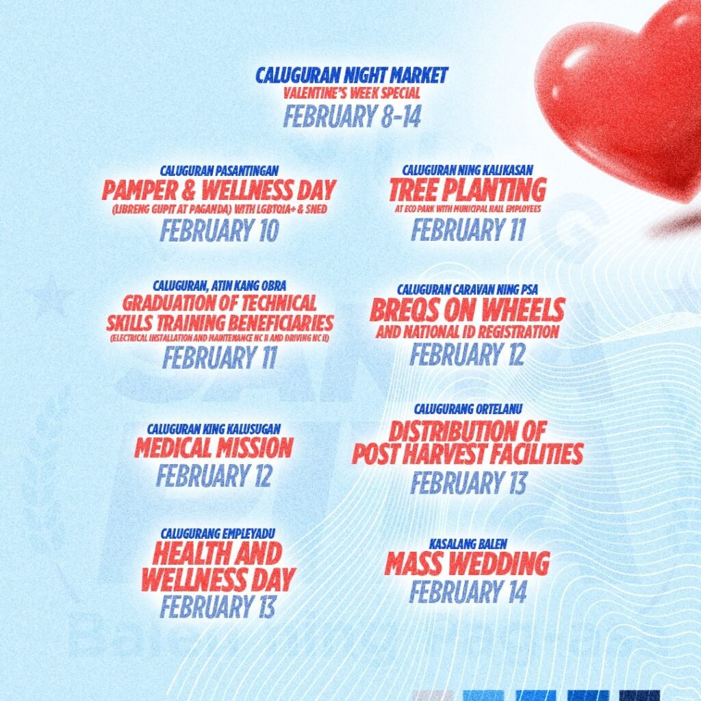 Among the highlights is the Caluguran Night Market, a Valentine’s Week special scheduled from February 8 to 14, offering a variety of local products and food selections for residents and visitors.