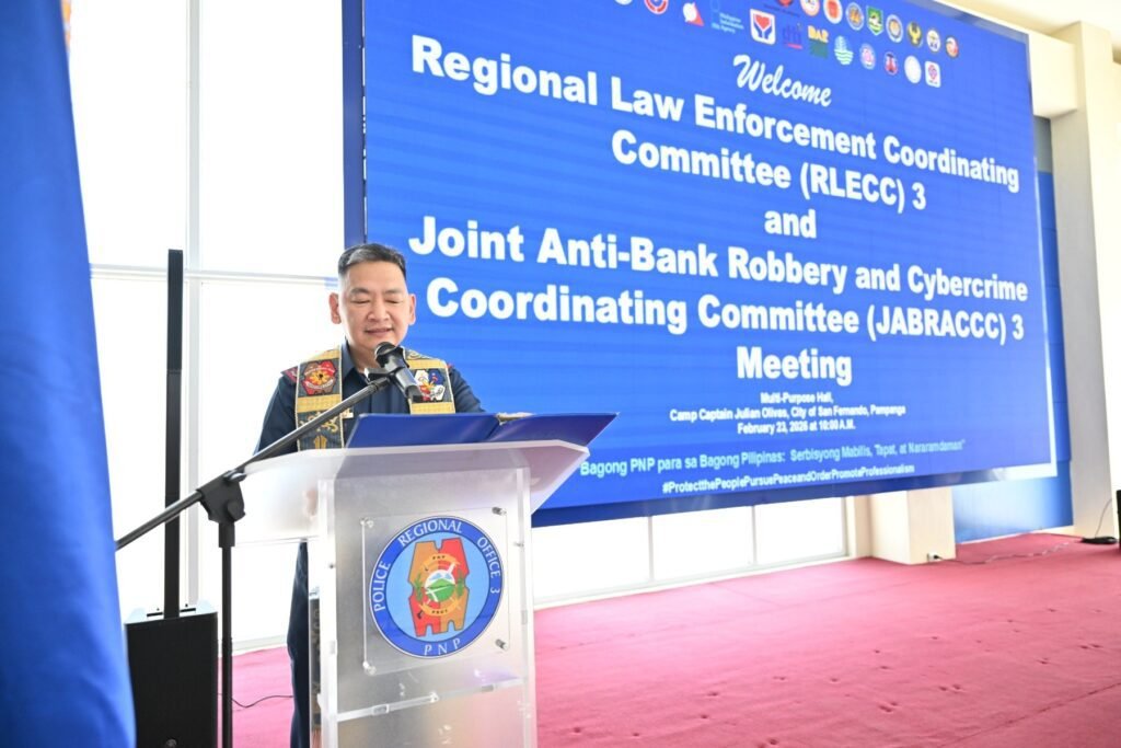 The Regional Law Enforcement Coordinating Committee (RLECC) 3 and the Joint Anti-Bank Robbery and Cybercrime Coordinating Committee (JABRACCC) 3 reinforced inter-agency collaboration during a joint meeting on February 23, 2026, aimed at strengthening peace and order across Central Luzon.