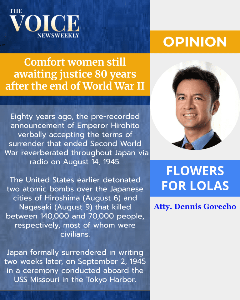 On March 8, 2023, International Women’s Day, the United Nations Committee on the Convention on the Elimination of Discrimination against Women (CEDAW) issued a decision finding that: “Philippines violated the rights of victims of sexual slavery perpetrated by the Imperial Japanese Army during the Second World War by failing to provide reparation, social support and recognition commensurate with the harm suffered.”