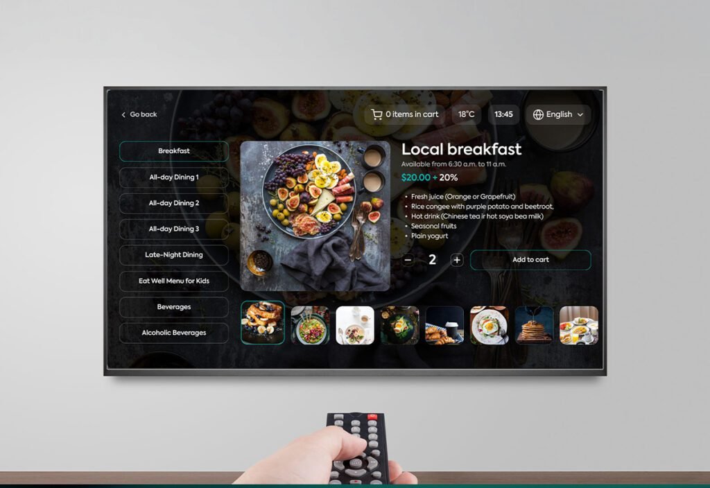 - In-room e-commerce functionality for ordering services and amenities.