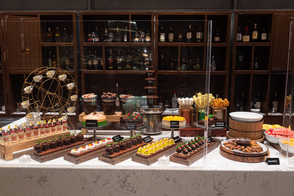 The dessert station is eye- catching while the noodle bar tucked inside the partitions to your left is a must-visit. The menu changes regularly so there is always something new to try.