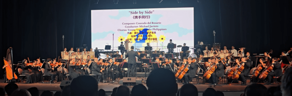 The evening’s repertoire featured Qiming Lu’s Overture ‘Ode to the Red Flag,’ the beloved ‘Butterfly Lovers Concerto,’ and Xian Xinghai’s ‘Yellow River Piano Concerto.’ Filipino music was also in focus with Lucio San Pedro’s ‘Ang Buwan sa Kabundukan’ and Alejandro Consolación’s ‘Dekada 70’ (Rhapsodic Suite for Orchestra), alongside folk-inspired selections ‘Setting Sail’ and ‘From Jasmine to Turandot.’