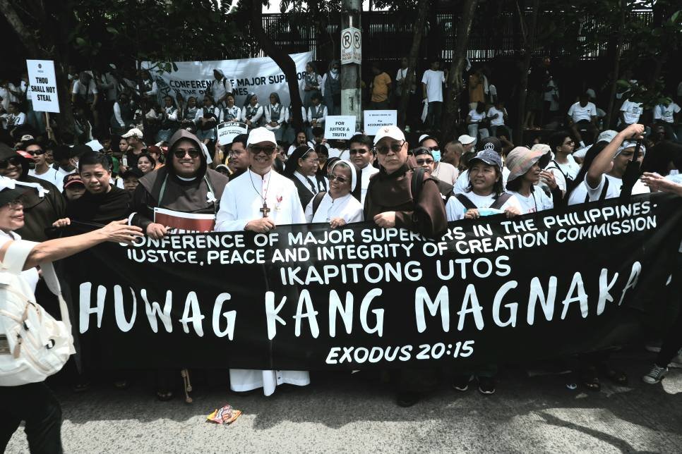 Cardinal Pablo Virgilio David, along with Bishops Jose Colin Bagaforo, Gerardo Alminaza, and Roberto Gaa, joined thousands of protesters at the People Power Monument in Quezon City on Saturday, September 21, in a rally against corruption.