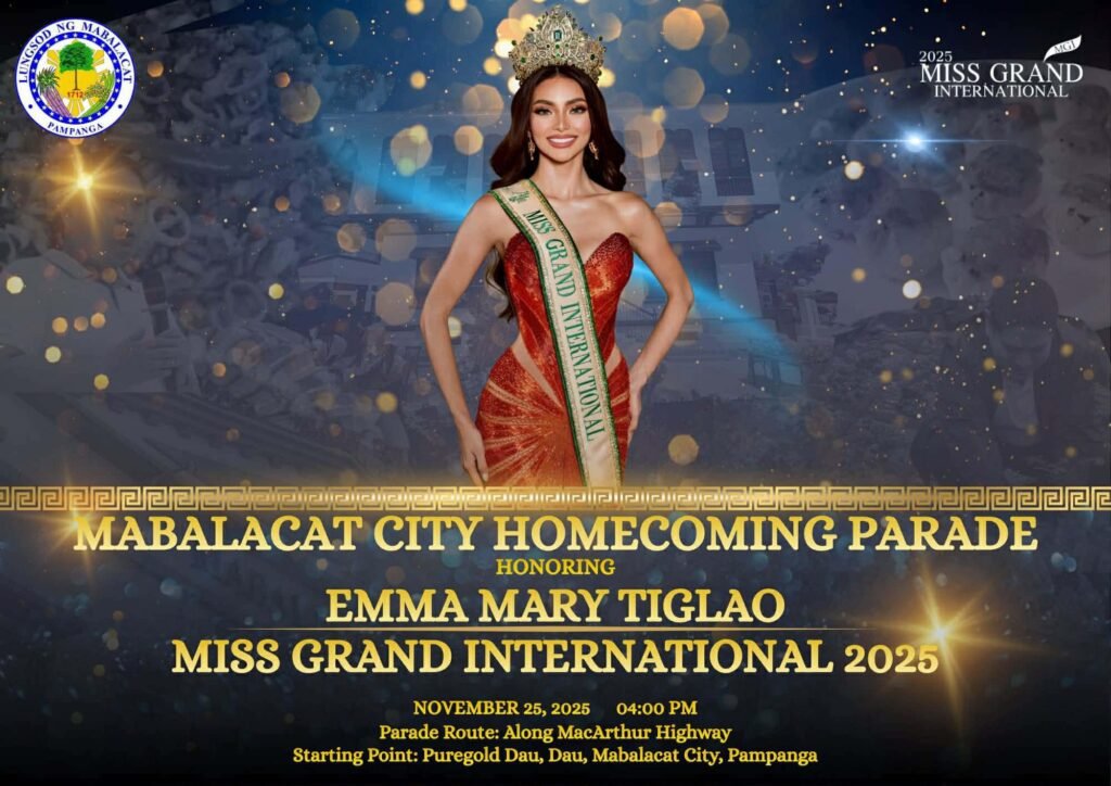 Matapos tanghaling Miss Grand International 2025, nakatakdang umuwi si Mabalaqueña beauty queen Emma Mary Tiglao sa kanyang hometown sa Lungsod ng Mabalacat.