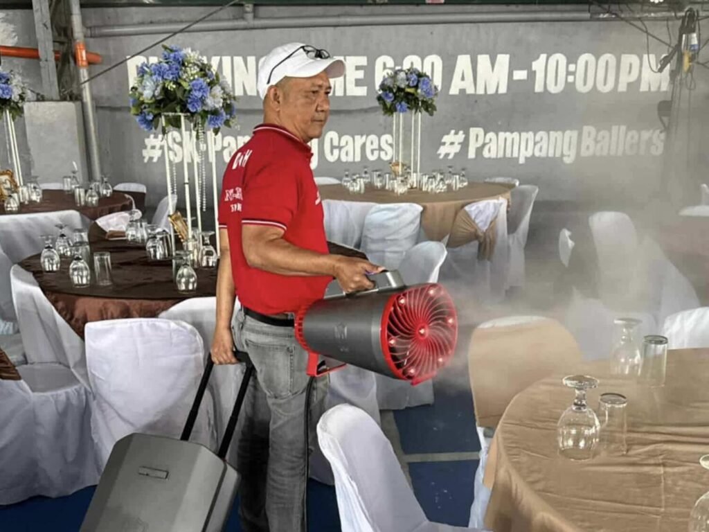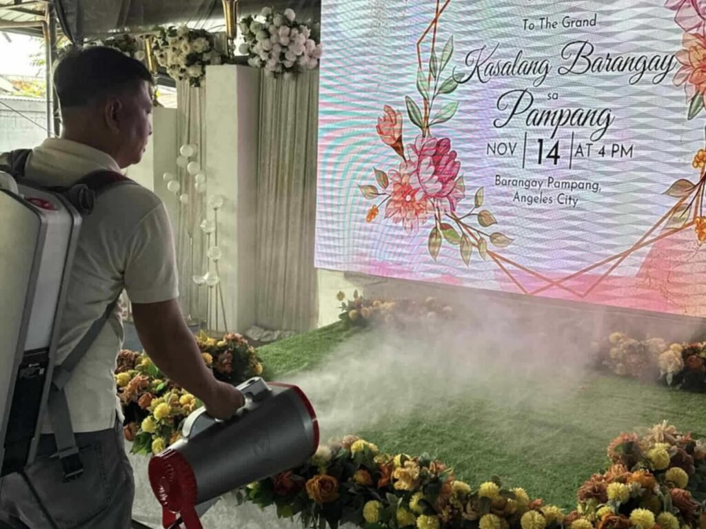 Mayor Carmelo ‘Jon’ Lazatin II has directed the Environmental Health Services – Disinfection Team to conduct thorough sanitation of the event venue in Barangay Pampang in preparation for the upcoming Kasalang Bayan.