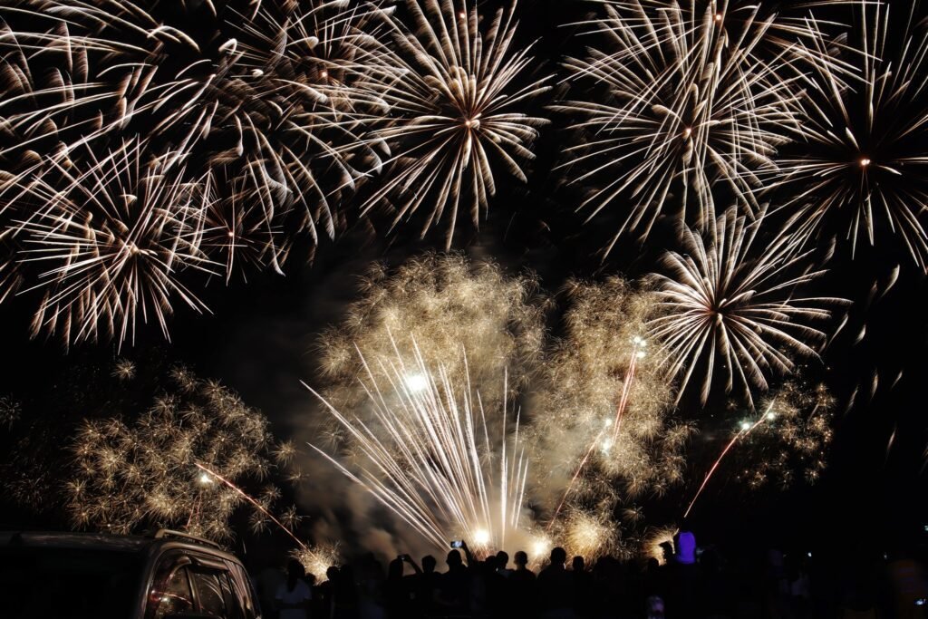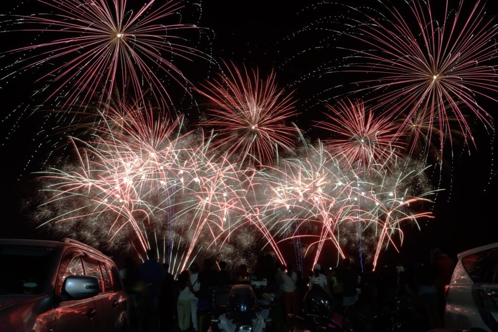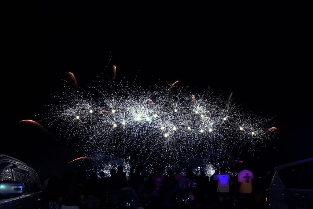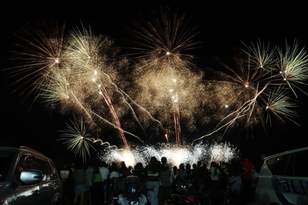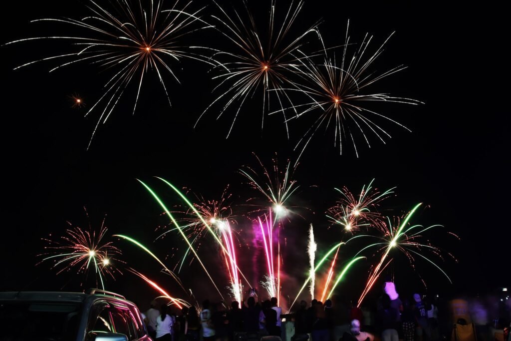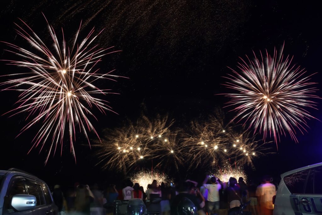 The event featured an energetic playlist paired with synchronized fireworks that lit up the night sky, drawing cheers from the crowd and showcasing the artistry behind pyrotechnic performances.