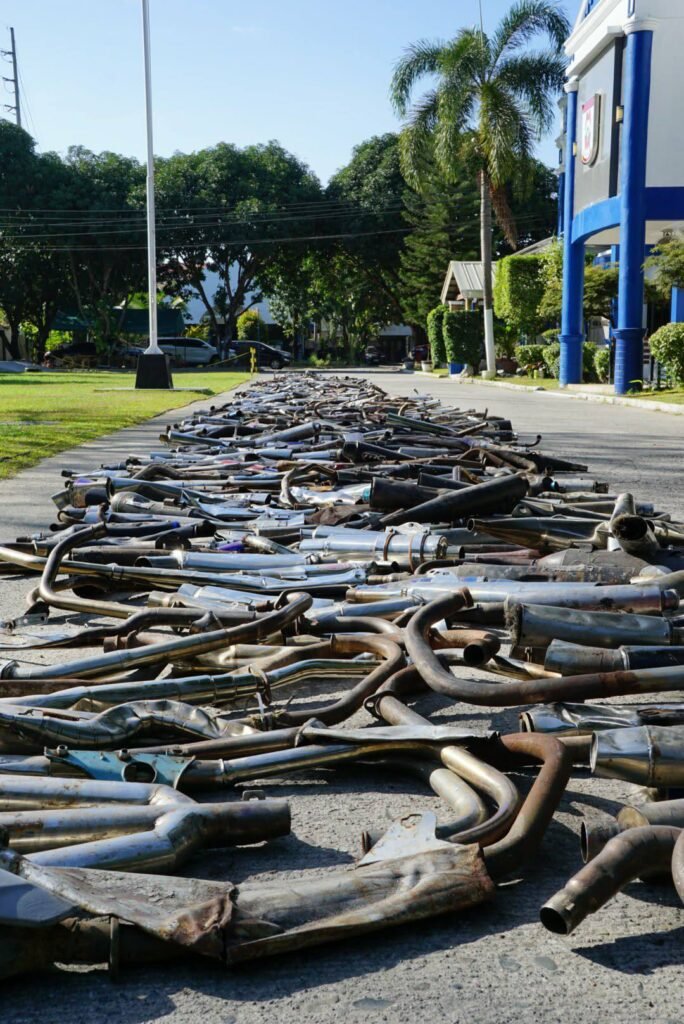 Authorities said the mufflers were seized during various law enforcement operations targeting motorcycle riders using excessively noisy exhaust systems in violation of existing regulations. Police noted that loud mufflers have long been a source of disturbance in residential areas, affecting the quality of life of residents.
