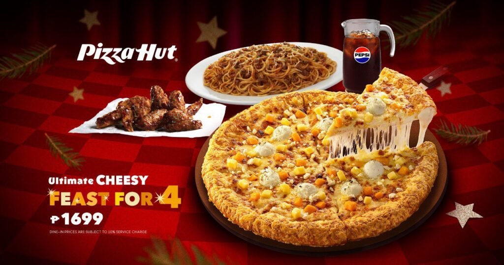 Starting at P589, the Ultimate Cheesy 8 Pizza is available in all signature crustsβPan, Mega Crunch, Stuffed Crust, or Ultimate Cheesy Bites. For bigger celebrations, Pizza Hut is offering two holiday bundles: the Ultimate Cheesy Feast for 4 (P1,699) and the Ultimate Cheesy Feast for 6β8 (P2,899), both featuring the new pizza alongside pasta, Wingstreet wings, and Pepsi drinks for the perfect holiday spread.