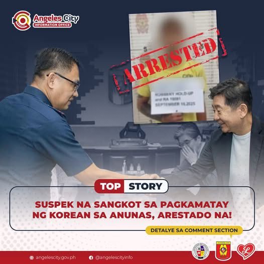 ACPO City Director PCOL Joselito E. Villarosa Jr. credited the arrest to strong inter-agency coordination and support from Mayor Carmelo “Jon” Lazatin II, whose commitment to public safety ensured swift action. The Korean Embassy and Central Luzon’s Korean community expressed their gratitude to local authorities for their efforts in securing justice and ensuring community safety.
