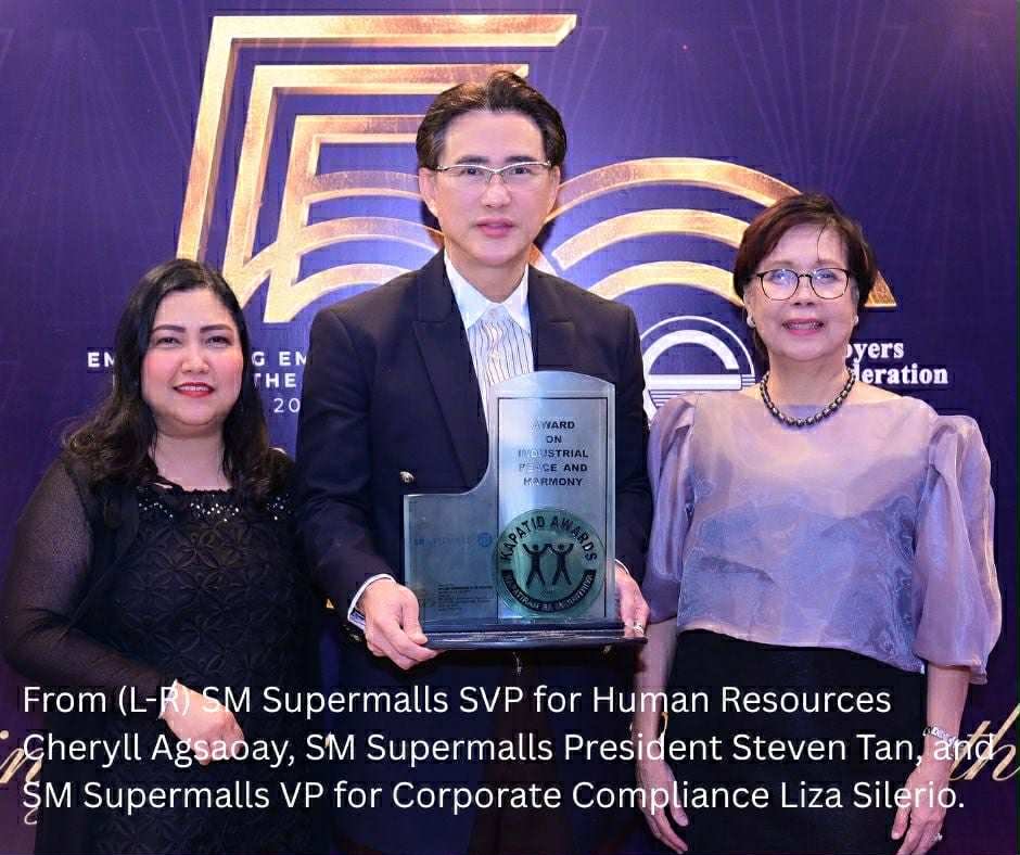 SM Supermalls was honored at the 2025 Kapatiran sa Industriya (Kapatid) Awards of the Employers Confederation of the Philippines (ECOP), held on July 30 at the historic Manila Hotel.