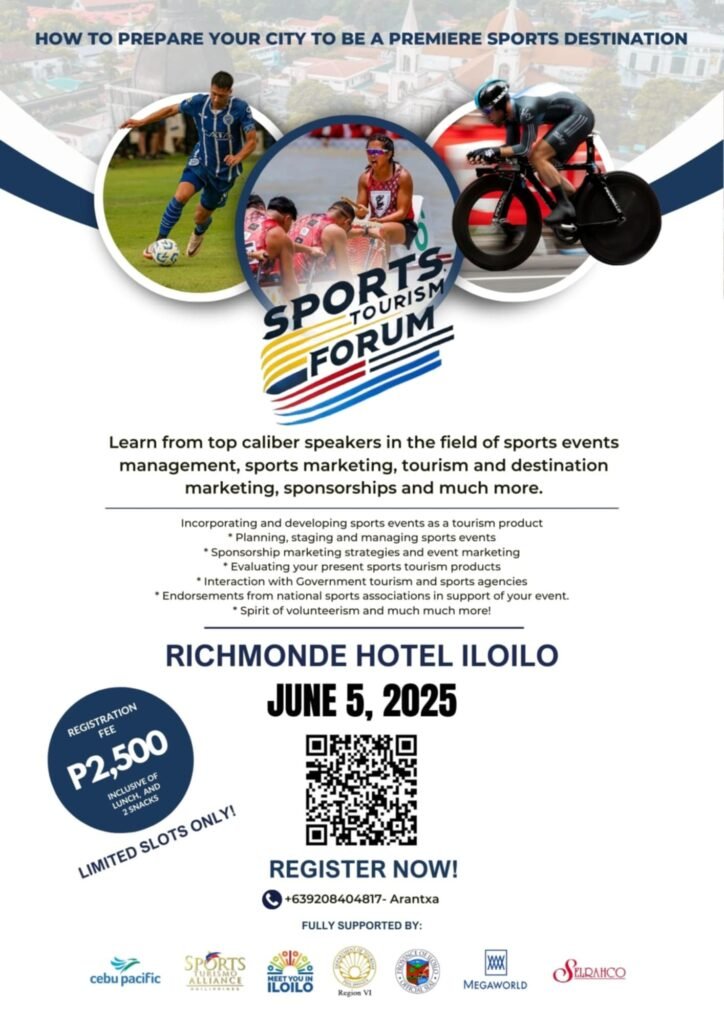Jointly organized by the Department of Tourism (DOT) Region VI, Sports Turismo Alliance, Inc., and the Provincial and City Governments of Iloilo, the forum aims to advance the growth of sports tourism in the Philippines.