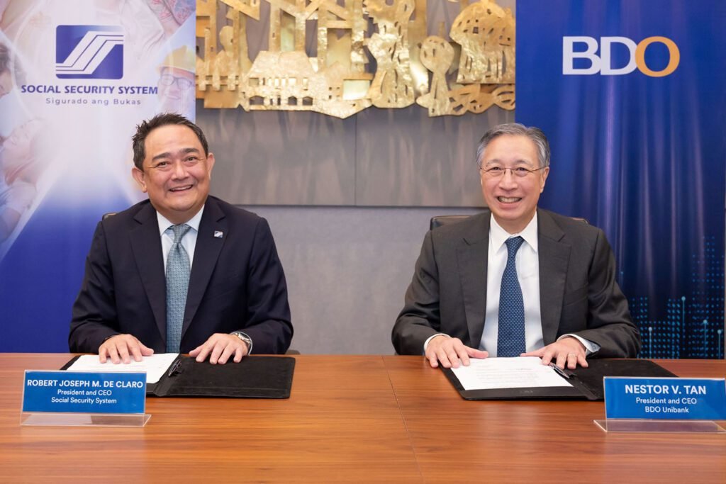 The ceremonial signing was led by Robert Joseph Montes de Claro, President and CEO of SSS, and Nestor V. Tan, President and CEO of BDO. The two leaders underscored the shared mission of ensuring pension adequacy and supporting national development.