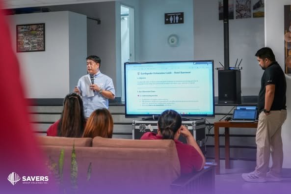 To further strengthen workplace safety and emergency readiness, Savers Group Holdings (SGH) held an Earthquake Preparedness Orientation on October 14, 2025, at the SGH Head Office in Balibago**.
