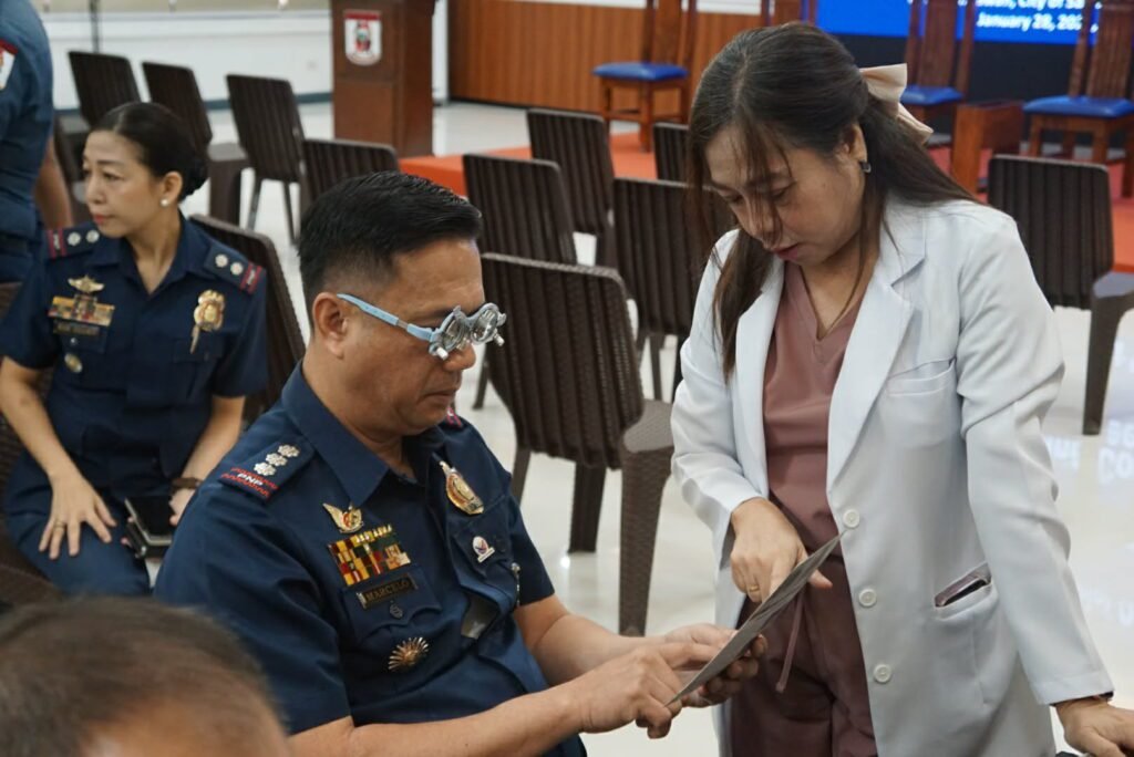 The initiative was led by Mr. Jan Behroz D. Butt, On-Site Health and Wellness Facilitator, in collaboration with Dra. Lourdes Masangkay of Glimpse Optical, who conducted professional eye screenings and consultations for participating police personnel.