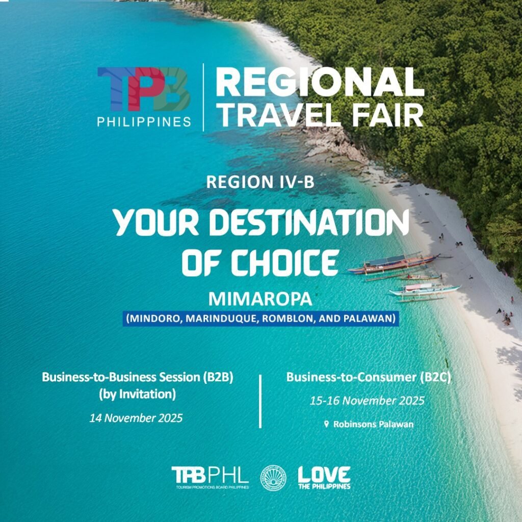 The Tourism Promotions Board (TPB) Philippines, the marketing and promotions arm of the Department of Tourism (DOT), announced that the 16th Regional Travel Fair (RTF) will take place from November 14 to 16, 2025, in Puerto Princesa City, Palawan.
