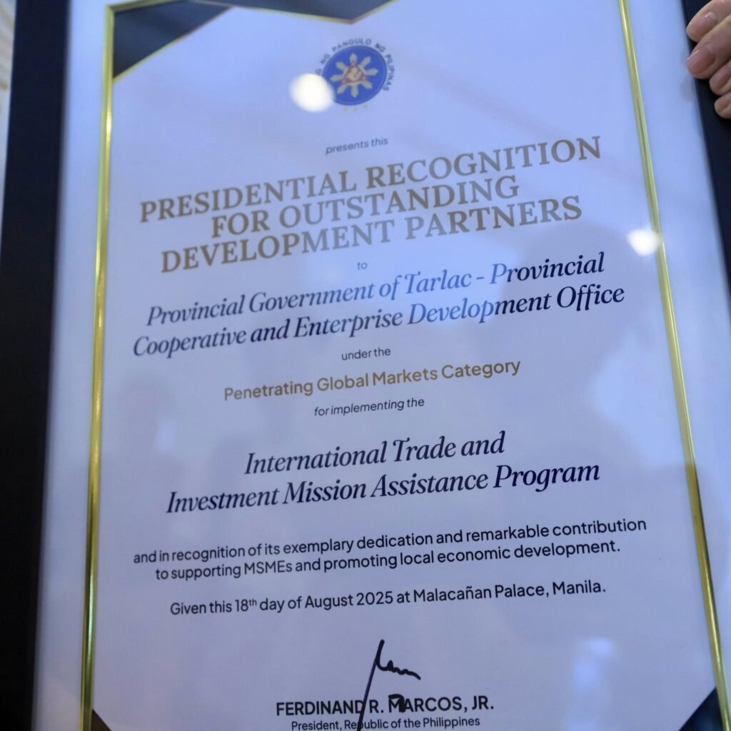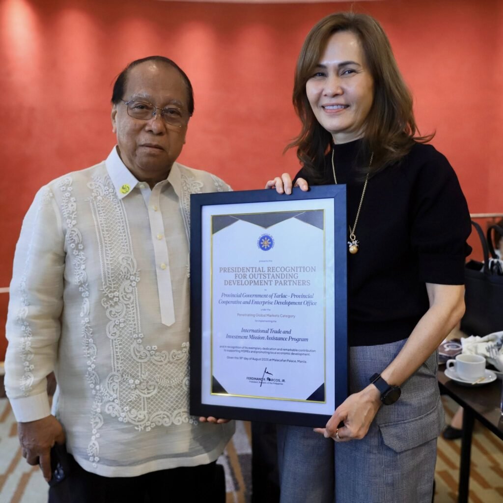 The award affirms Tarlac’s commitment to supporting inclusive economic development and highlights the province’s contribution to the country’s trade and investment landscape.