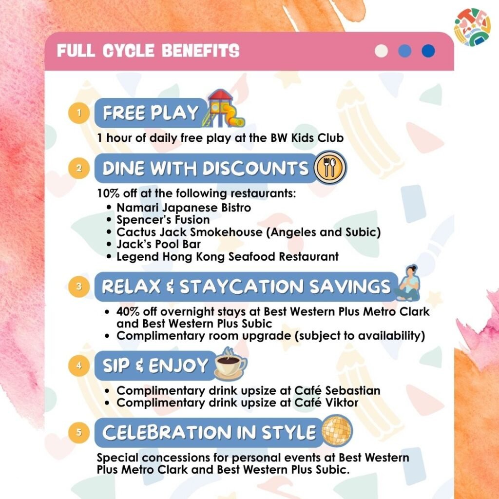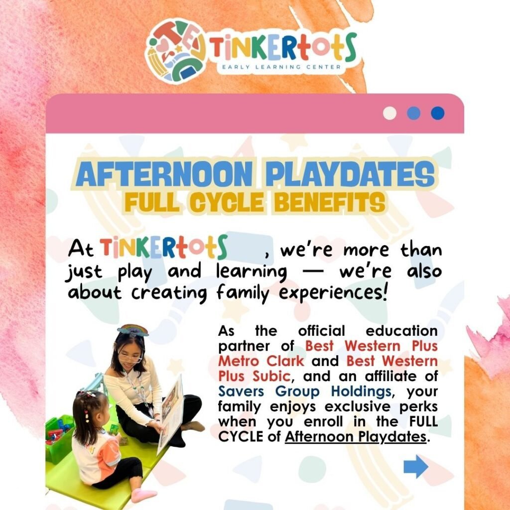 Families now have even more reasons to celebrate meaningful learning moments as Tinkertots, in partnership with Best Western Plus Metro Clark, Best Western Plus Subic, and Savers Group Holdings offer Exclusive Perks for those enrolled in the Full Cycle of Afternoon Playdates.