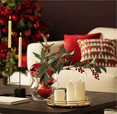 Inspired by the colors of the season, this year’s collection tells a story of harmony and joy. The Green Story evokes calm and renewal — a modern sanctuary inspired by nature. The Red Story brings depth and vibrance, with rich tones of crimson and wine that fill your home with festive warmth. And for those seeking a chic, contemporary twist, Styled for the Season: The Designer’s Choice blends soft blues and blush pinks — elegant, modern, and full of personality.