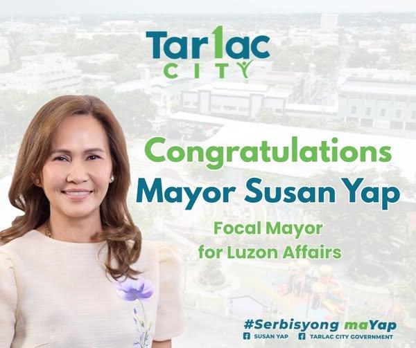 Mayor Susan Yap has been appointed as the Focal Mayor for Luzon Affairs of the League of Cities of the Philippines (LCP), a recognition of her unwavering dedication, clear vision, and honest public service.