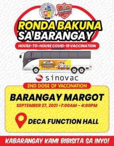 Second Dose of Ronda Bakuna sa Barangay Margot. 🗓️ September 27, 2021 🚌 Bus Stop 🔴 Deca Function Hall
