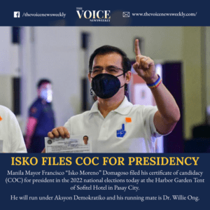 Manila Mayor Francisco “Isko Moreno” Domagoso filed his certificate of candidacy (COC) for president in the 2022 national elections