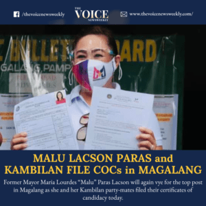 Former Mayor Maria Lourdes “Malu” Paras Lacson will again vye for the top post in Magalang as she and