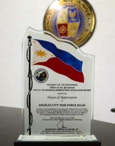 The local government here under the leadership of Mayor Carmelo “Pogi” Lazatin, Jr. received a plaque of appreciation for its active participation to promote inclusive and sustainable peace.