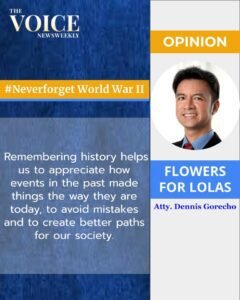 Flowers for Lolas By Atty. Dennis Gorecho “Never Forget” is an expression and political slogan used to urge others