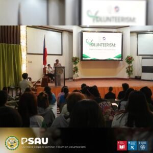 Students from Pampanga State Agricultural University (PSAU) engaged with US Peace Corps Volunteers during the seminar–forum “Volunteerism: Students’ Awareness,