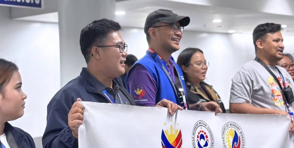 The group included 54 overseas Filipino workers and 13 of their relatives. They were welcomed at the airport by officials from the Department of Migrant Workers (DMW), led by Assistant Secretary Francis Ron De Guzman, along with representatives from the Overseas Workers Welfare Administration, New NAIA Infrastructure Corp., and the airport medical team.