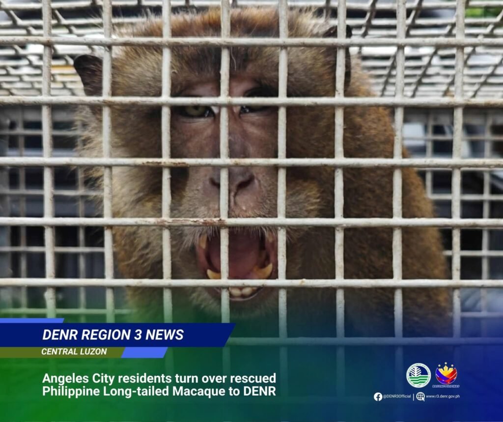 The Angeles City Government, through its Environment and Natural Resources Office, has officially turned over a rescued Philippine long-tailed macaque (Macaca fascicularis philippensis) to the Department of Environment and Natural Resources (DENR) Region III.