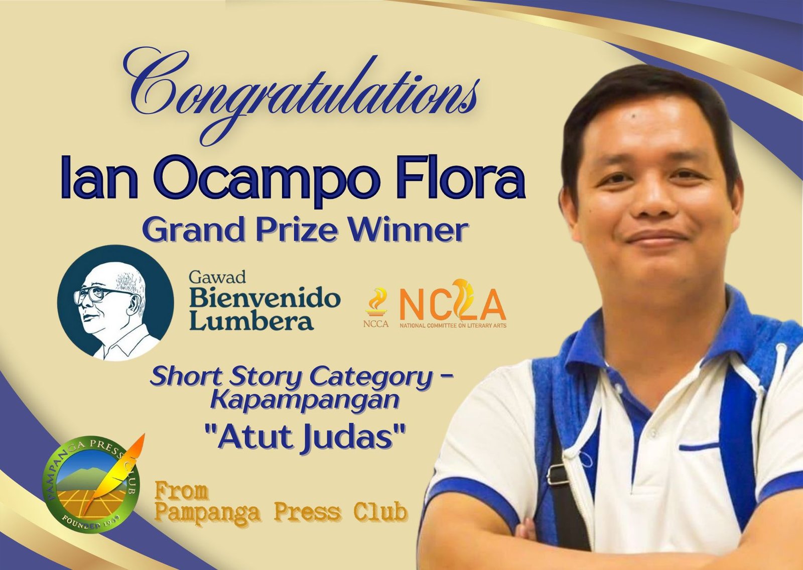 Multi-awarded journalist and writer Ian Ocampo Flora has brought pride to Pampanga after winning the Grand Prize in the