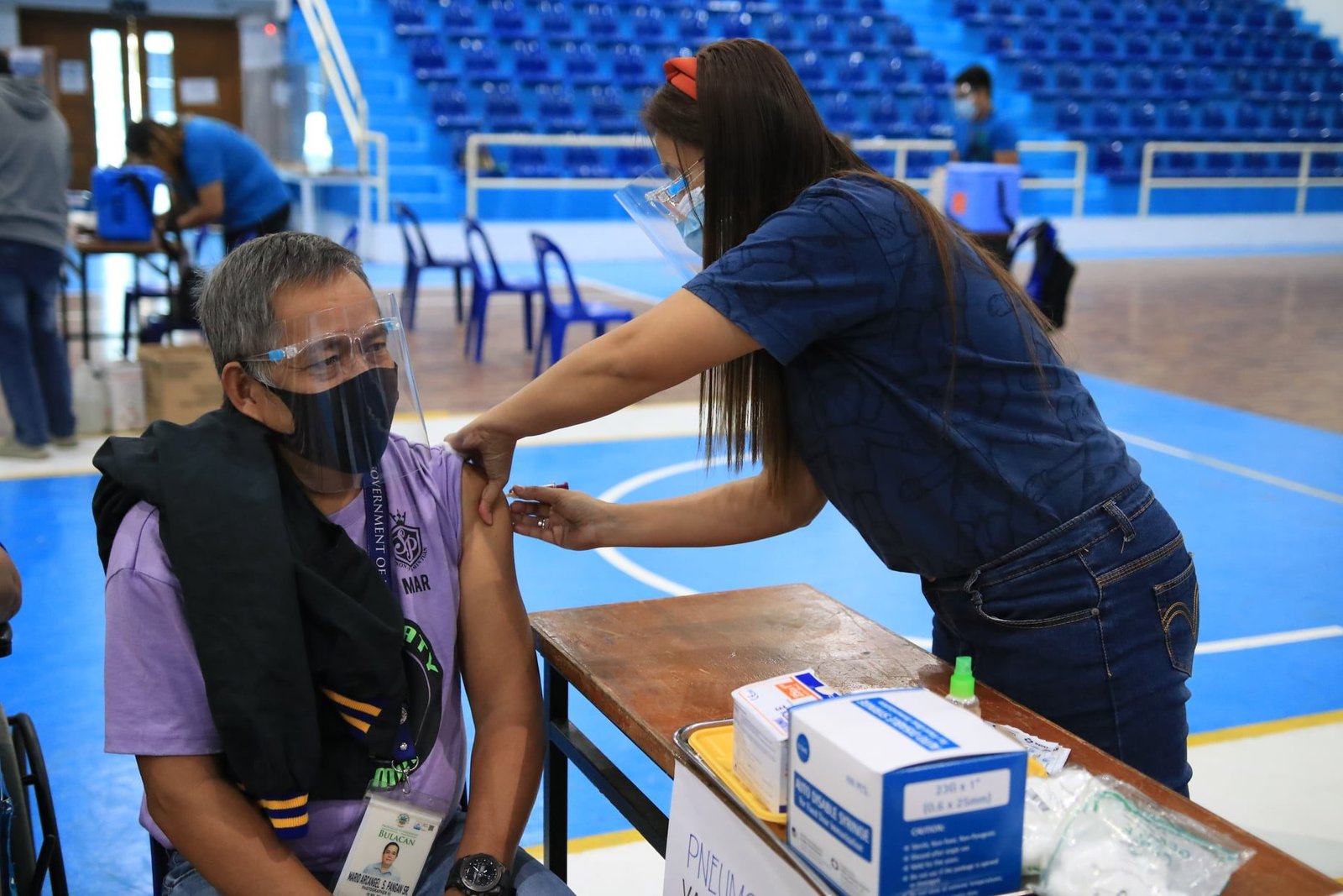 Mario A. Pangan, a senior employee of the Provincial Government of Bulacan, receives his doses of pneumonia and flu