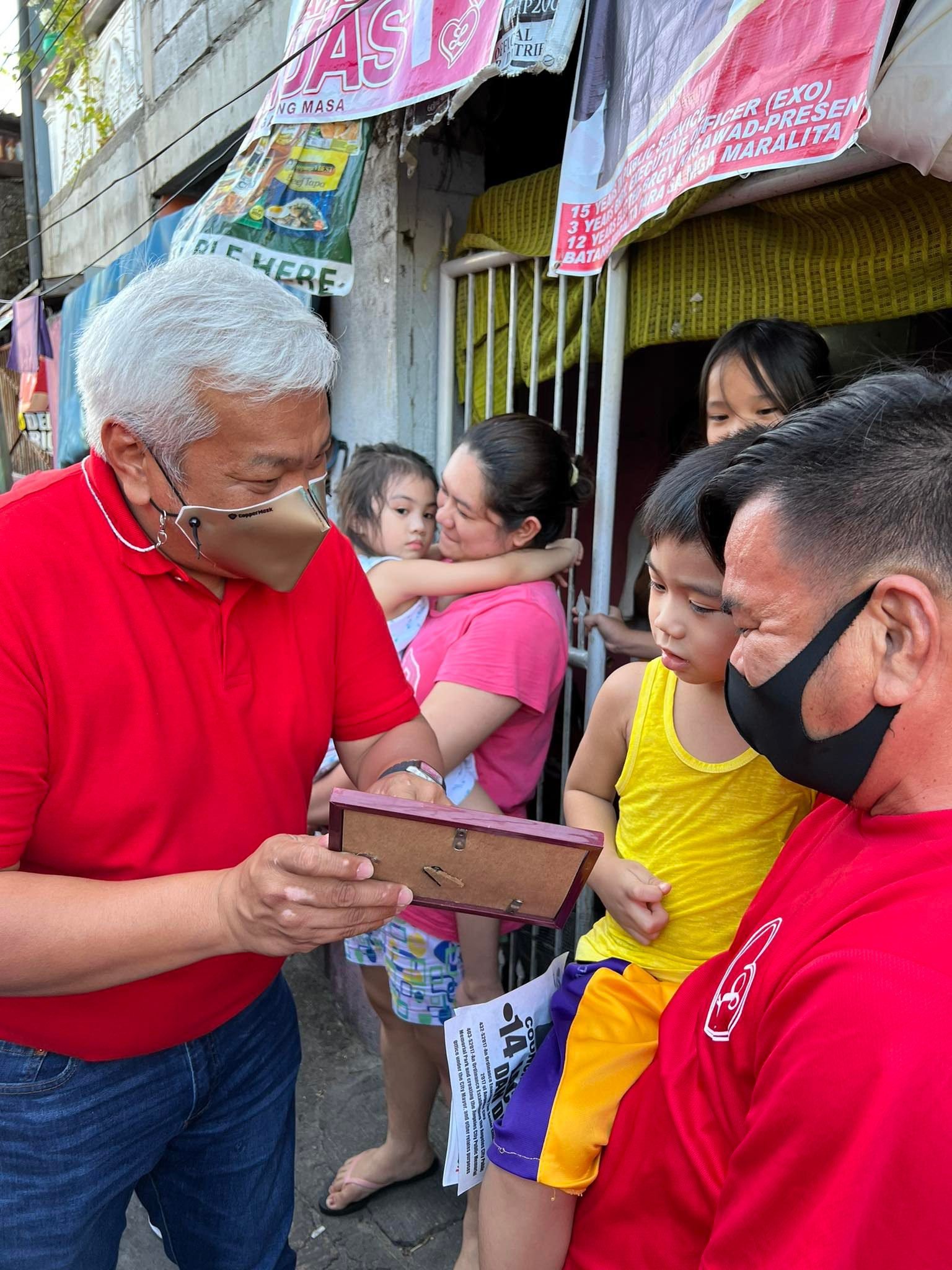 As Team Lazatin makes the rounds in Barangay Agapito Del Rosario on March 31, a young resident of the barangay shows re-electionist Angeles City Mayor Carmelo “Pogi” Lazatin, Jr. an old picture of them, taken on the campaign trail back in 2019 when Lazatin ran for his first term as City Mayor.