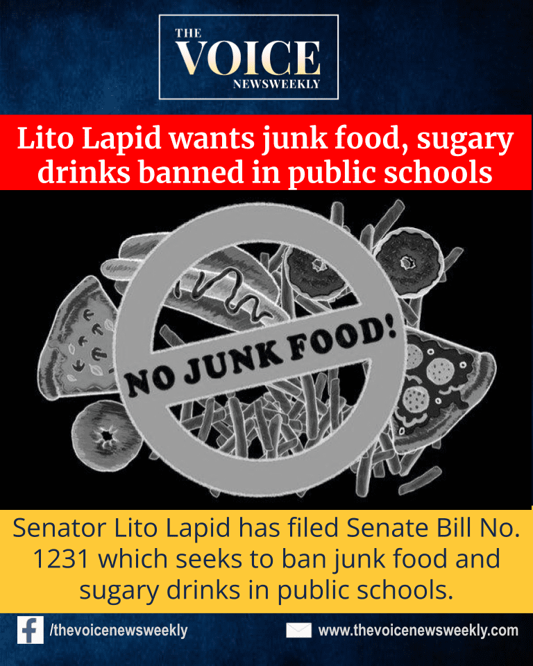 Senator Lito Lapid has filed Senate Bill No. 1231 which seeks to ban junk food and sugary drinks in public schools.