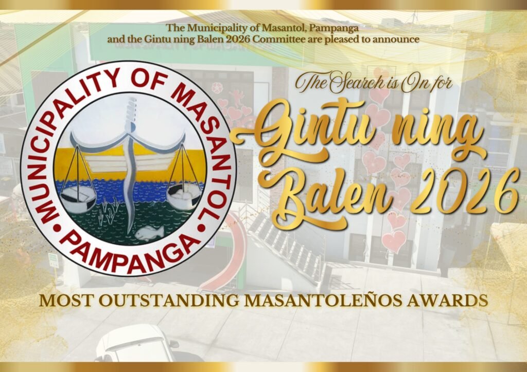 The Municipal Government of Masantol, led by Mayor Dan Guintu and through the Public Information Office (PIO), has officially opened nominations for the Gintu ning Balen Awards 2026, recognizing outstanding Masantoleños who have contributed to the town’s pride, progress, and community development.