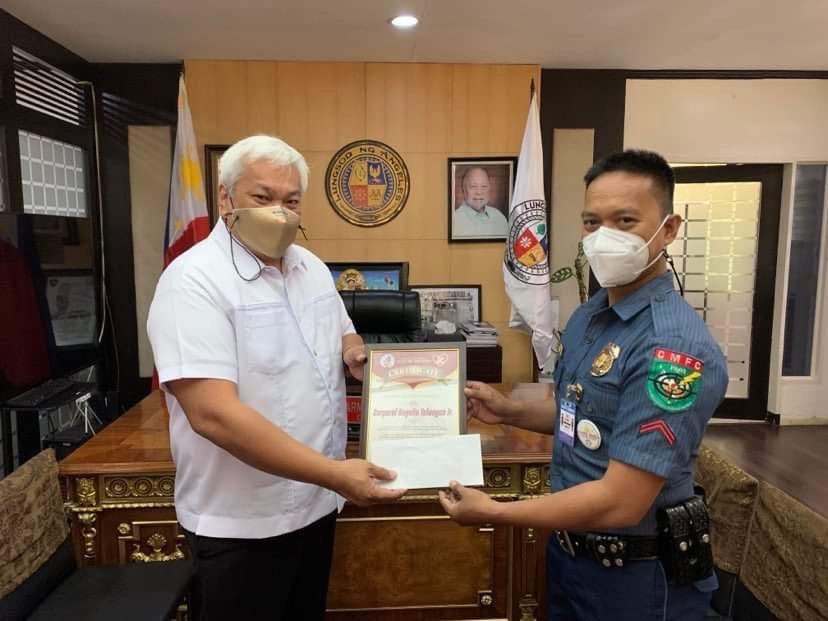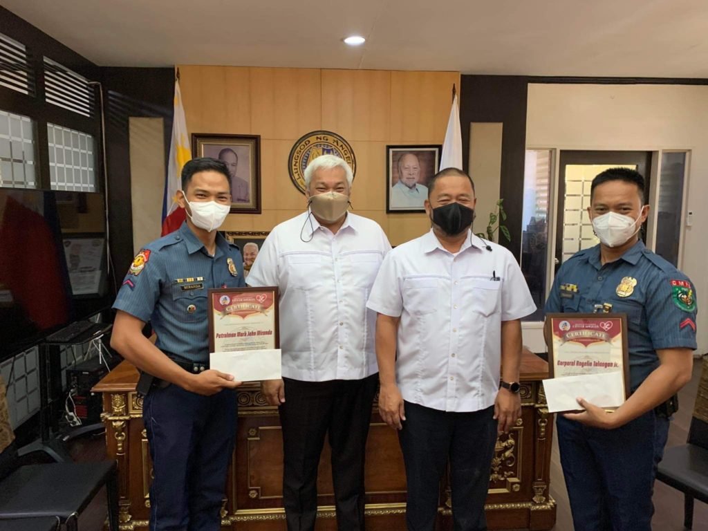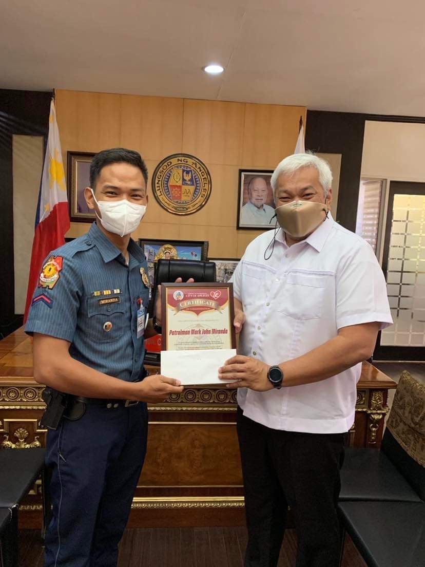 Angeles City Mayor Carmelo ‘Pogi’ Lazatin Jr. on May 16, 2022 awarded certificates of commendation to Corporal Rogelio Talaogan Jr. and Patrolman Mark John Miranda who went beyond their duties by looking after the welfare of their constituents to ensure peace and order during the 2022 elections.