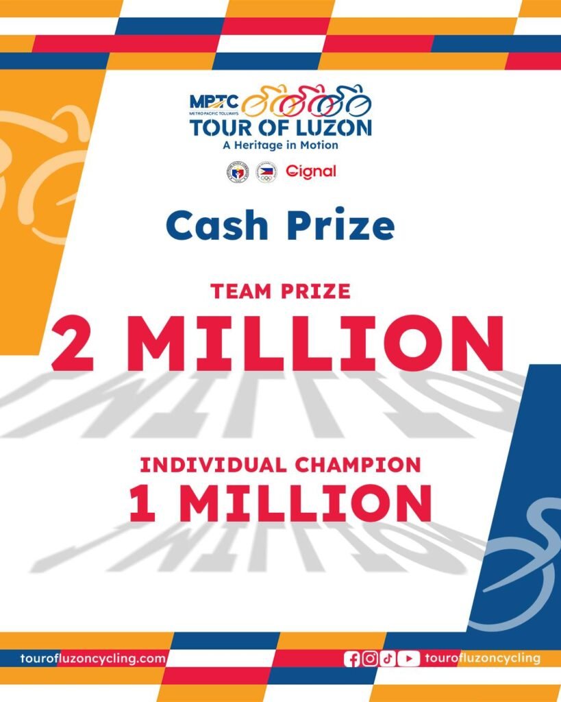 The 2026 MPTC Tour of Luzon is set to offer the largest prize pool in its history, with ₱2 million awarded to the Team General Classification champion and ₱1 million to the Individual General Classification winner, organizers announced.