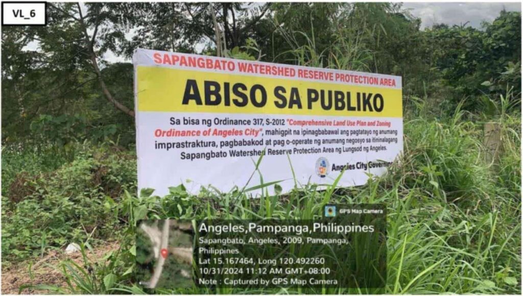 📸 Photos show posters installed in the Sapangbato Watershed during Lazatin’s term as Mayor, marking the area as a protected “no-build” zone.