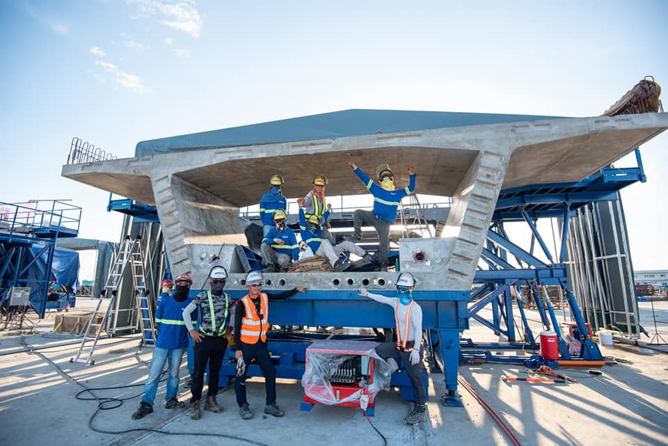 The “LUID” will travel 5.5 kilometers between Brgy. Lourdes, Minalin in Pampanga and Brgy. Gatbuca, Calumpit in Bulacan, and will be utilized to construct the railway viaduct. It will also lift sixteen 35-ton pre-casted segmental box girders and combine them into one 40-meter railway viaduct span. In total, the “LUID” will create 140 railway viaduct spans.