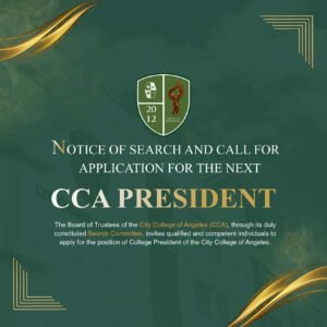 The Board of Trustees of the City College of Angeles (CCA), through its Search Committee, has opened the application